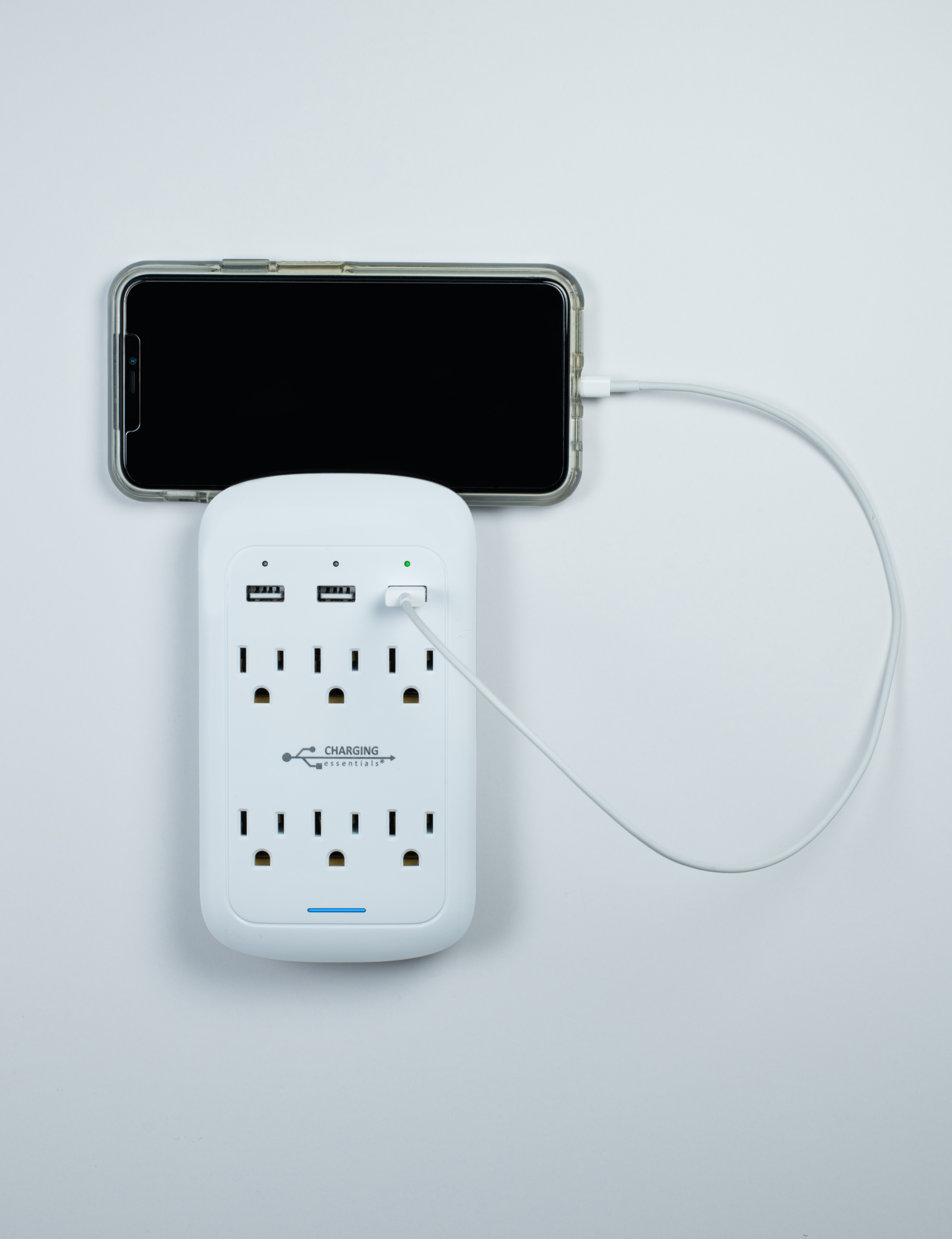 Manage your USB charging needs, and turn 2 AC outlets into 6 with the compact, space saving Charging Essentials Wall Tap. This wall tap features 6 AC outlets and 3 rapid-charging USB ports. The USB ports offer a combined 4.1 amps of power to fast charge even multiple devices at once.