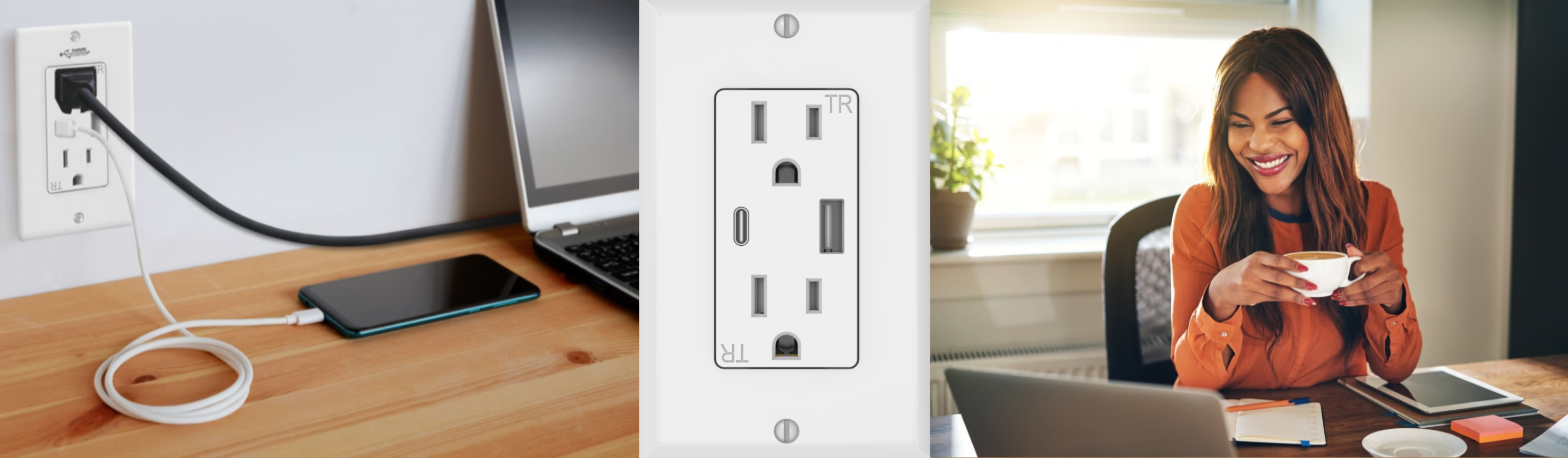 Take control and manage your household charging needs with the Charging Essentials In-Wall AC Receptacle with USB-A & USB-C Ports. No more searching for USB charging adaptors or finding an open outlet! Conveniently fulfill all your charging needs with one outlet that houses two standard AC outlets, a USB-A port and a USB-C port. The Charging Essentials In-Wall AC/USB Receptacle replaces any standard 15-amp wall outlet and is equipped with a tamper resistant safety mechanism. Providing an abundant source of power, Charging Essentials can transform any low battery home into a charged oasis.